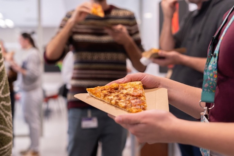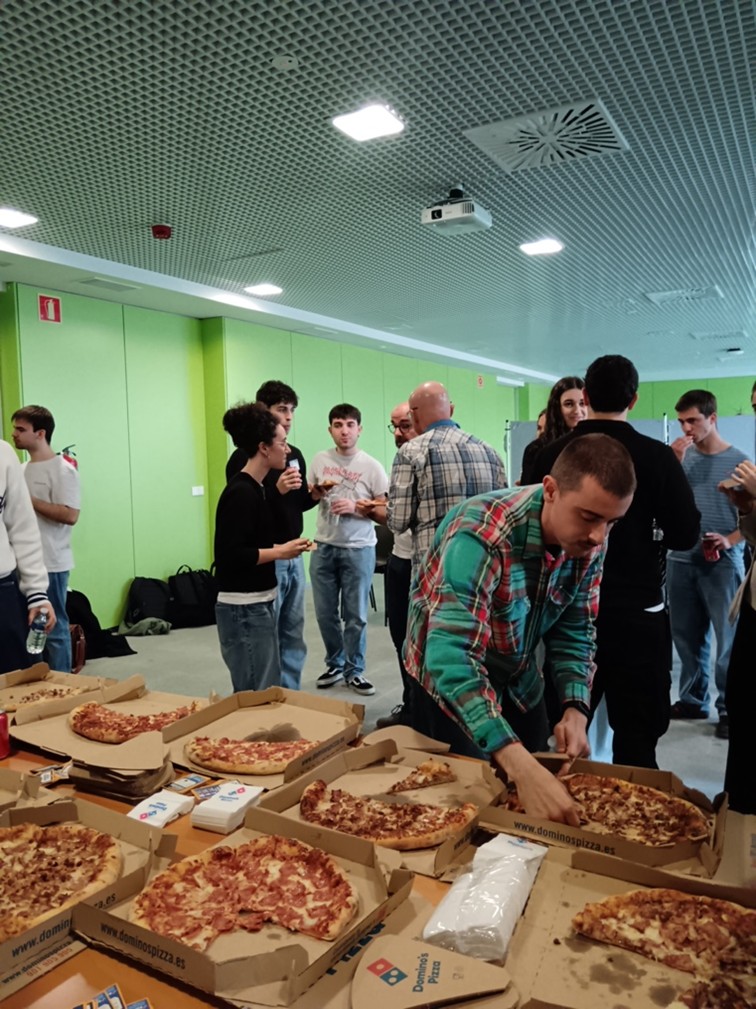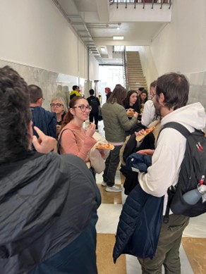 The session continued in a relaxed atmosphere, where participants had the opportunity to discuss science informally while enjoying pizza and drinks. The event concluded with a short game and a prize, further contributing to the lively and participatory spirit of the activity.
