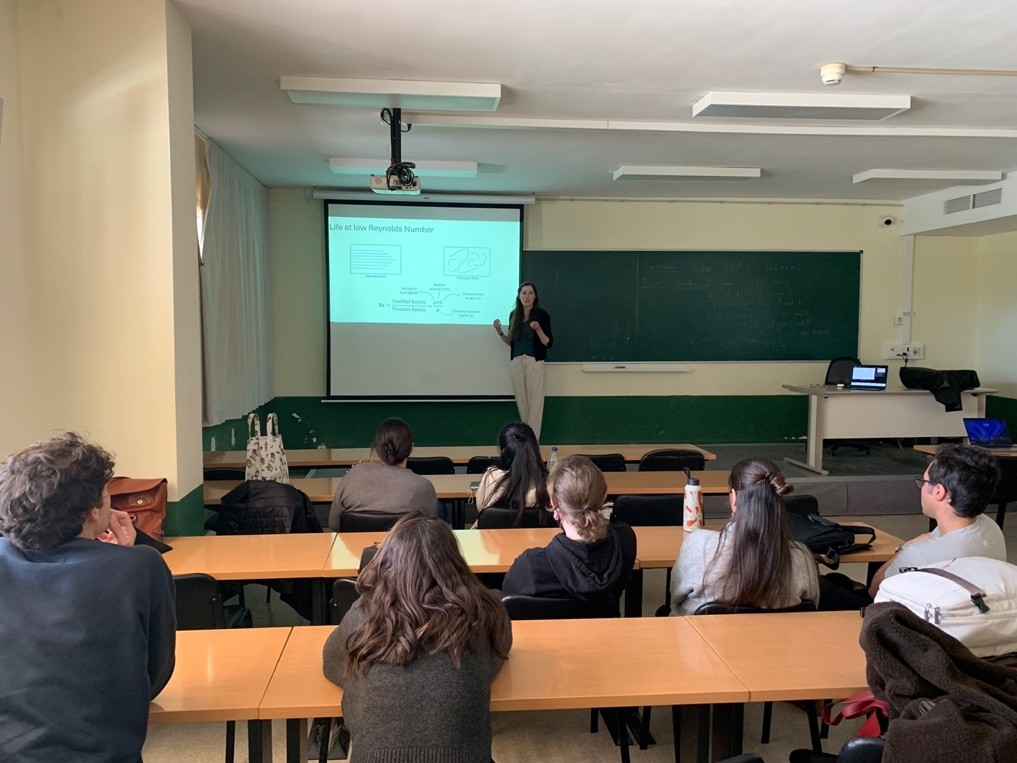 This year our event was a three-pronged affair geared towards young physics students. We stated with three mini-talks by Marco Polin (Investigador Científico CSIC), Ludivine Sanchez Arias (soon to be MSCA Postdoctoral Fellow) and Sujeet Kumar Choudhary (Margalida Comas Postdoctoral Fellow). Starting from cells and microorganisms, we talked about motility, sensing, responses to environmental stimuli. We engaged the students with hands-on experiments on bioluminescence and phototaxis and topped it off with some yummy pizza and a lively informal chat with the students.