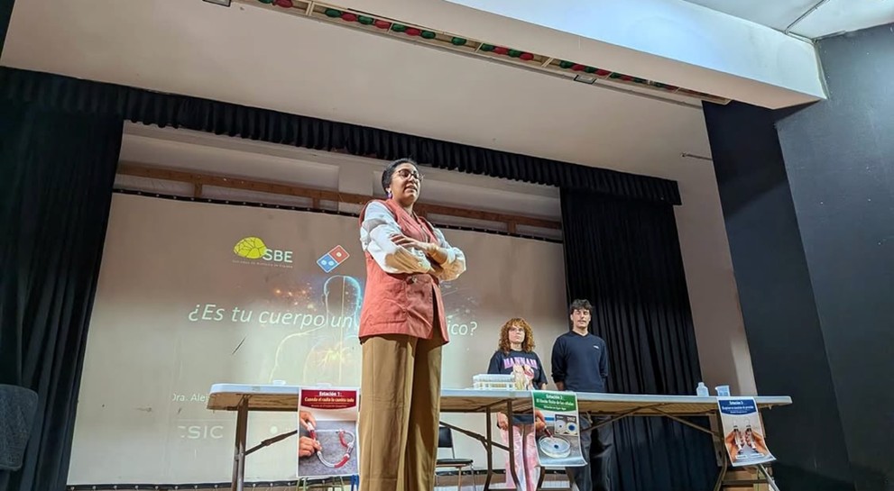 The program featured two highly engaging outreach talks focused on biophysics. On the one hand, early-career researcher Alejandra Carrancho explored the relationship between amyloid protein aggregation and the development of neurodegenerative diseases, as well as its application in the design of early diagnostic methods. Her talk, entitled “Detecting the invisible: towards early diagnosis in Parkinson’s disease”, was met with great enthusiasm by the audience.